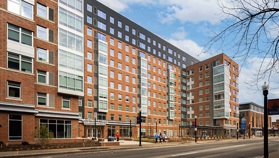 Duquesne University is set to complete an 11-story, 556-bed student apartment building on Forbes Avenue, opening in fall 2024. The facility will offer 216 apartment units, each featuring private bedrooms, full-size beds, in-unit washers and dryers, and a range of modern amenities. Residents will benefit from 24-hour emergency maintenance, a front desk, a fitness center, student lounges, study and collaboration spaces, a communal kitchen, a game room, a mini mart, and bike storage. The building will also include outdoor courtyards and in-building mail service.